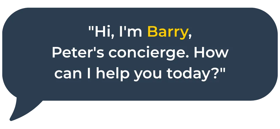 This is Peter Simonson’s Concierge — powered by Barry, your digital assistant, and supported by Peter’s live concierge team. Together, we handle anything you need: from trusted local vendors to real estate questions to everyday home services. One ask, and it’s done.